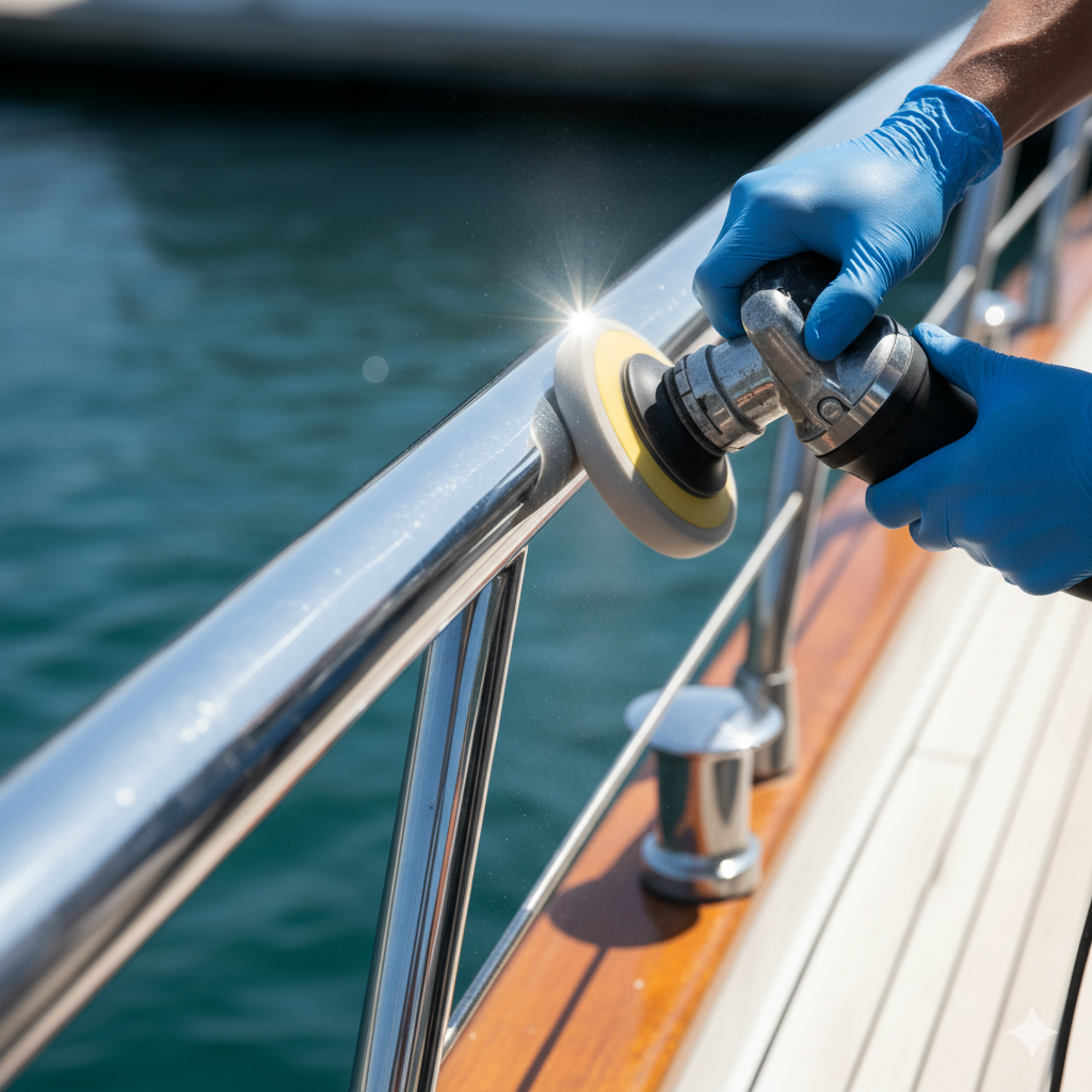 Restore the brilliance of your boat’s metal surfaces with our professional metal polishing service. Perfect for rails, cleats, ladders, and hardware, we remove oxidation, water spots, and dullness to bring back a mirror-like shine. A polished finish not only enhances the appearance of your vessel but also makes future cleaning easier and helps maintain the integrity of the metal.